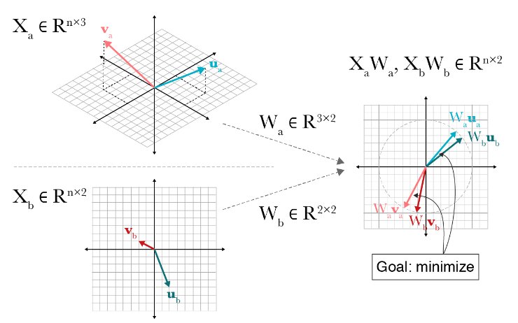まずは、16次元のワードを3次元のベクトルに落とし込みます。(3ワードの”3”とは無関係です。短縮次元はいくつでもいいのです。)。それぞれの生成行列を定義します。初期値はランダムです。